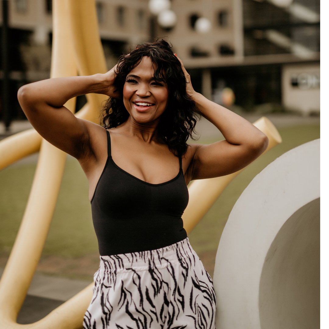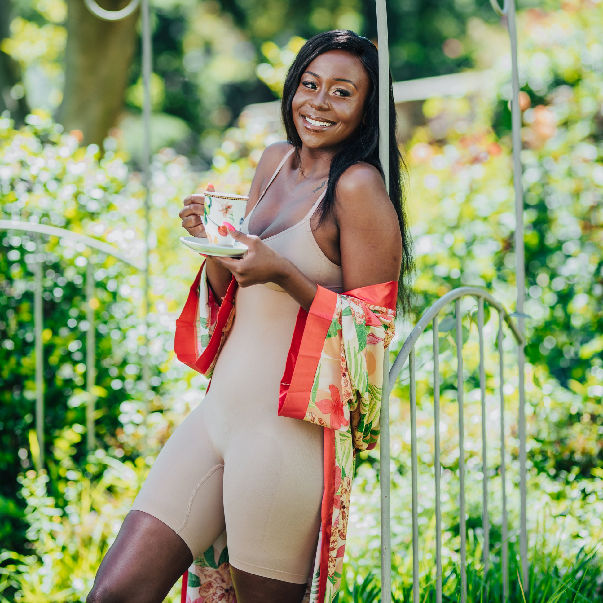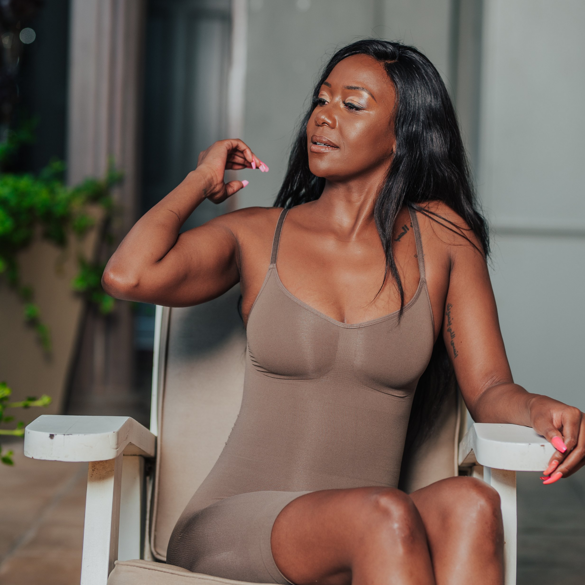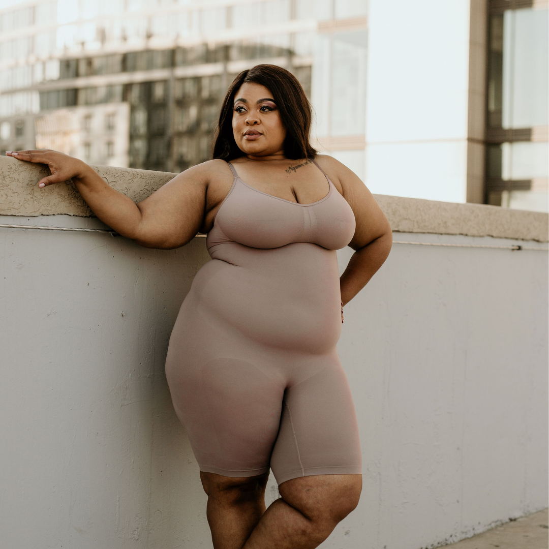 The All the Way Up Bodysuit is a body contouring essential shapewear solution. It accentuates your body and gives you a natural hourglass figure. While giving you a firming and smoothing effect on your hips and thighs , it also provides core support, and a bonus mesh bum lift.